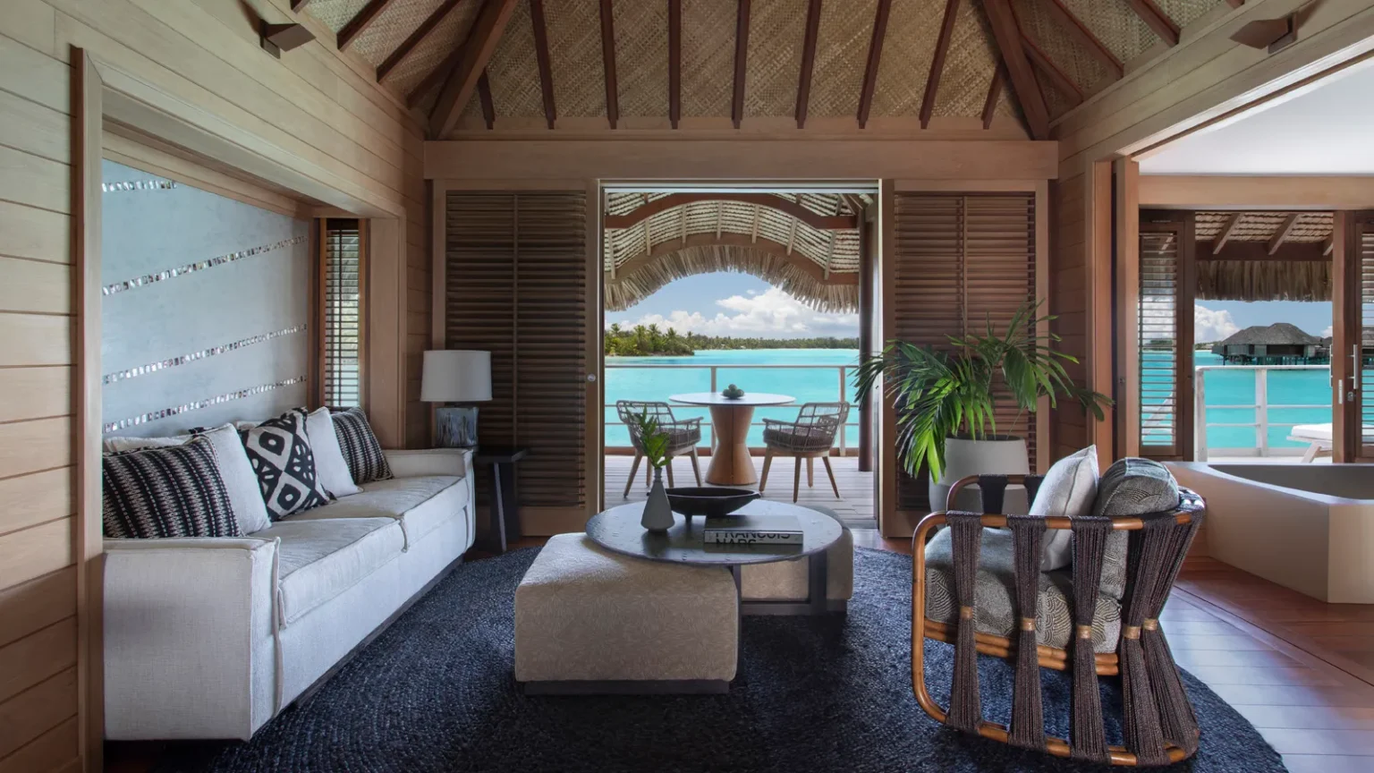 Ponad 500 bungalowów nad wodą wzniesionych na wysokości 3-6 m (10-20 ft) nad taflą laguny gwarantuje absolutną intymność. Każdy dysponuje prywatnym tarasem z bezpośrednim schodem do turkusowej wody oraz plunge pool z panoramicznym widokiem. Charakterystyczna przeszklona podłoga, nazywana „Tahitian TV” – zamienia salon w prywatne akwarium pełne koralowców i tropikalnych ryb.